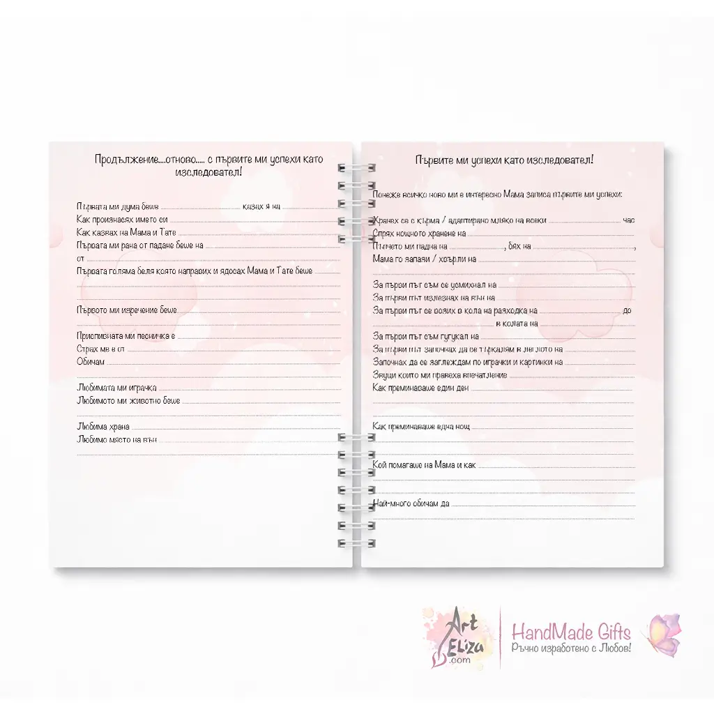 Албумът-дневник е във формат A5 с много места за надписване и много снимки. Снимките в него са във формат 10×15 cm и 9х13 см. Състои се от 54 страници и след залепване на снимките става доста обемен и красив.