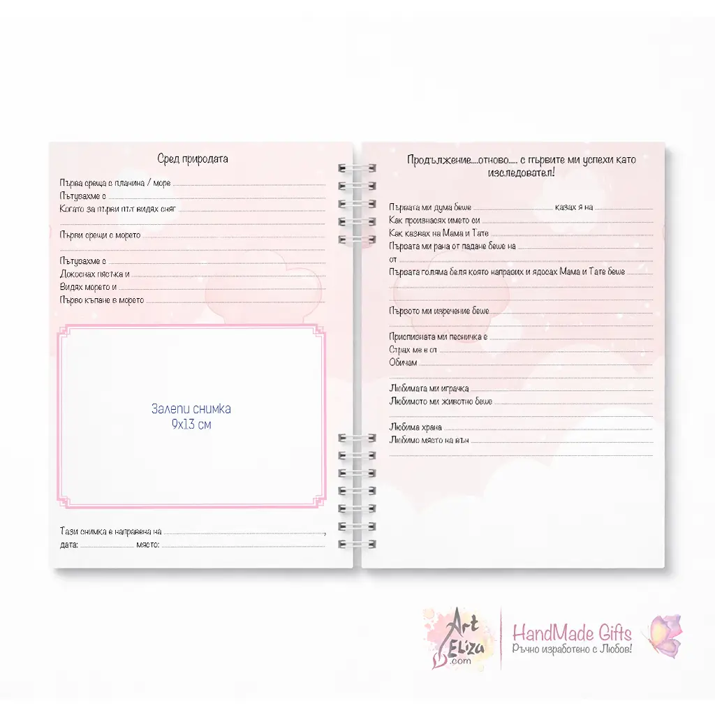 С албумът дневник ще можете да запазите всички важни спомени, снимки и моменти от първата година като забавно и лесно попълвате по готови теми, периоди и въпроси.