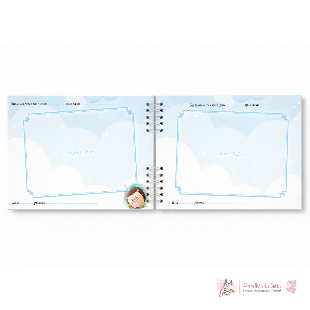 Очарователен албум за ученик със сладко таралежче, който събира най-ценните спомени от 1-ви до 12 клас. Перфектен подарък за първия учебен ден и незабравим спомен от детството.