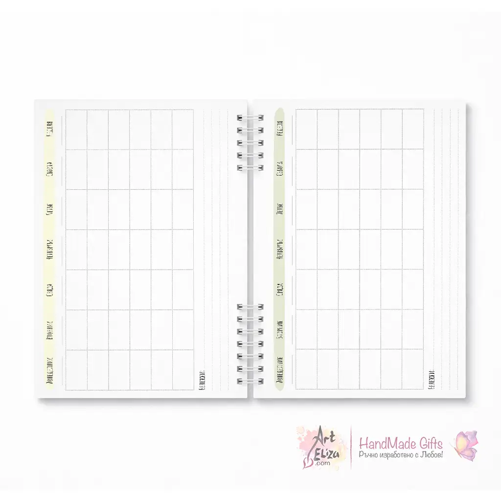 Това е практичен седмичен график, в който лесно можете да записвате каква храна сте въвели, в какво количество и как е реагирало вашето бебе. Всичко е събрано на едно място – ясно, подредено и удобно за проследяване.